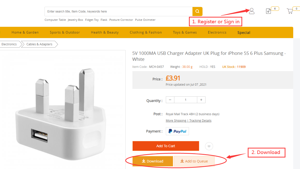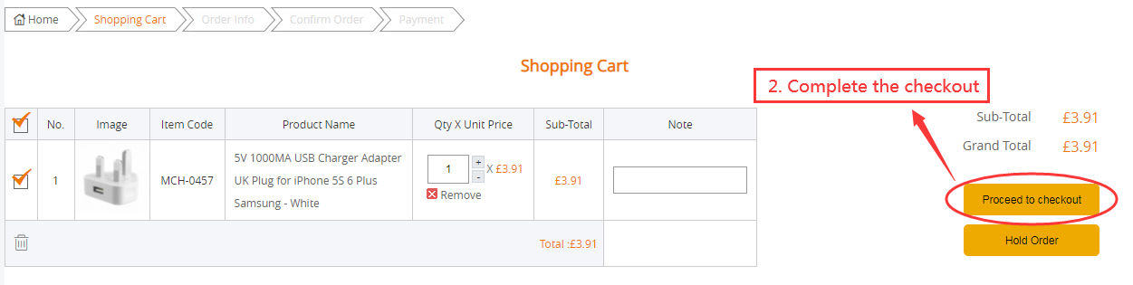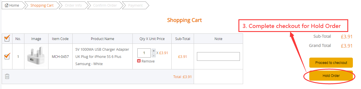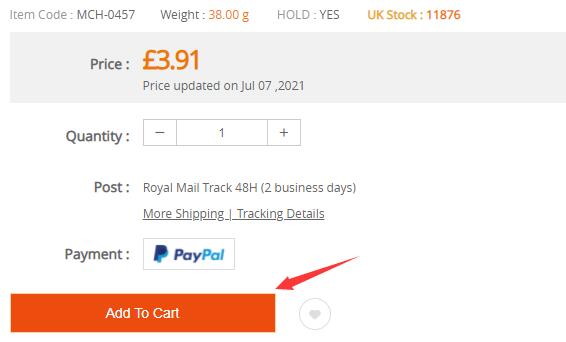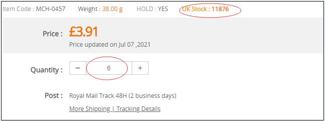 2. Add to cart for hold stock. Add products to cart with the quantity you want to hold. Please make sure that your hold stock quantity do not exceed our UK stock quantity.