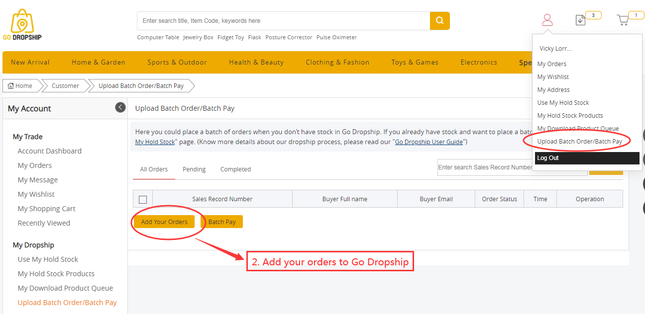 2. Add your orders to EasyBuyy. Go to "Upload Batch Order/Batch Pay" page, click "Add Your Orders".